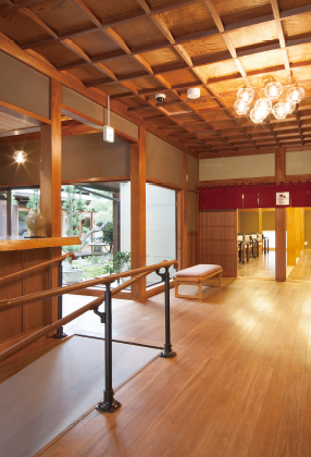 元料亭の純日本家屋をそのまま活かしながら、安全面などの設備を配慮してリフォーム。味わい深い和の趣とともに、夏場は自然の風がそよぐ爽やかな空気感が味わえます。